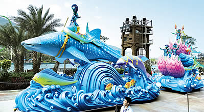 珠海長隆巡遊花車造型包括提基活火山、海洋小精靈、熱帶夜雨林、極光盛宴、夜間深海、夢幻糖果樂園、鬼魅海盜船和馬戲彩光等震撼的主題燈光花車?,F已成為世界先進的主題公園演藝專案!擁有多個“世界第一”。